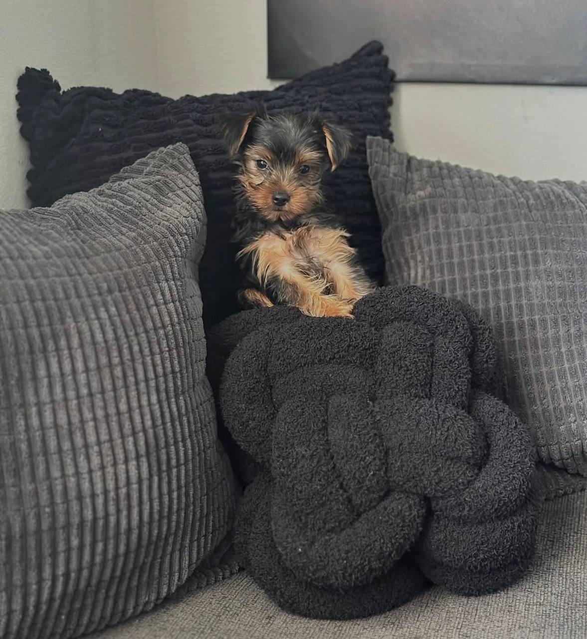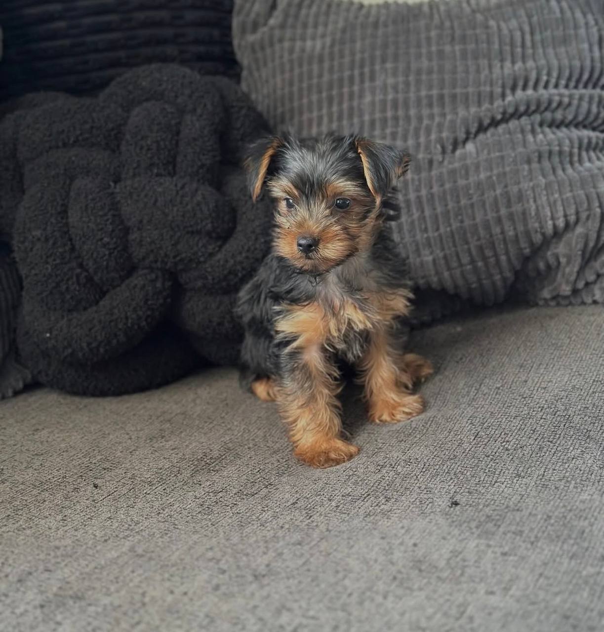 Bentley Cole (Male) – 12 weeks, distinguished expression, steady temperament, excellent companion and lap partner.