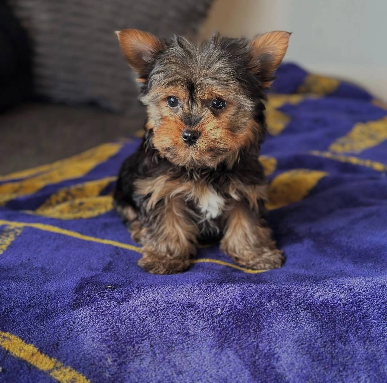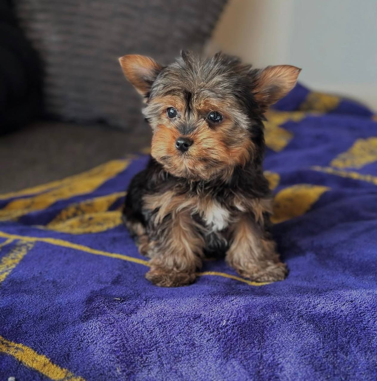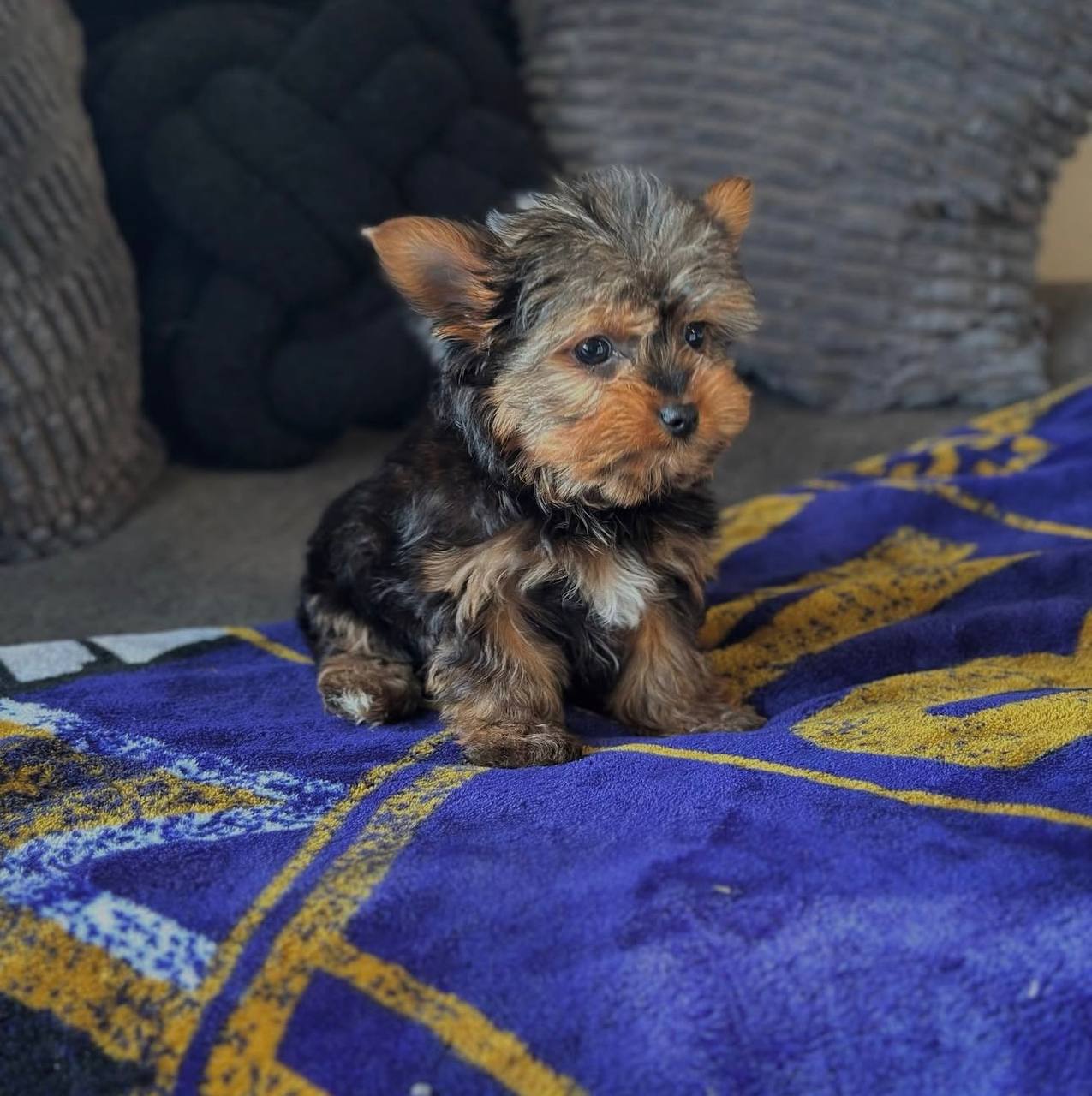 Luna (Female) – 12 weeks, graceful and affectionate, stunning steel blue transition beginning, exceptional companion quality.